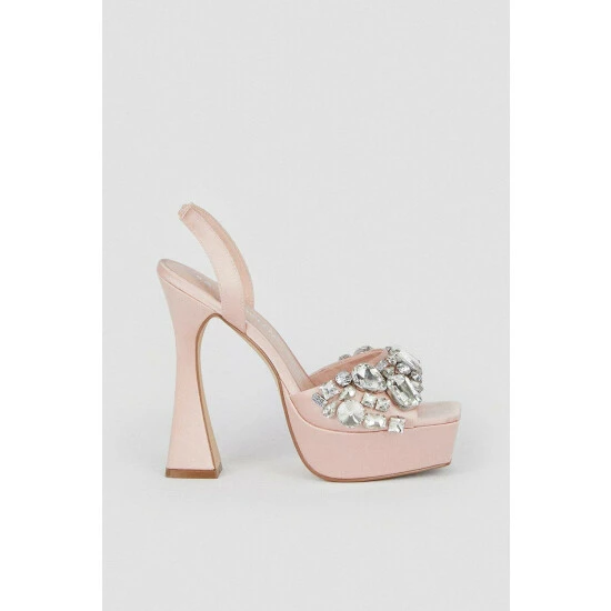The KarenMillen Satin Gemstone Slingback is a dream! The platform is extreme but manageable, and the slingback design keeps them secure. Perfect for a night out!