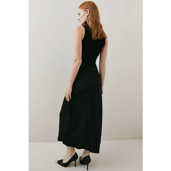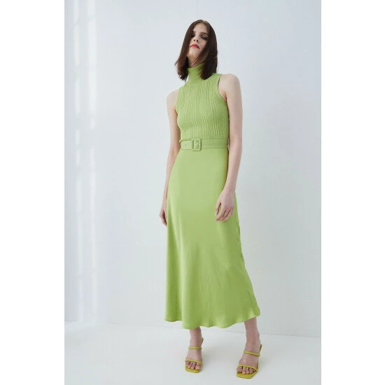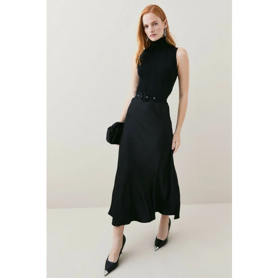 65% Viscose 35% Polyester. Wash belt separately, machine hand wash cycle. Model wear UK Small. Model height approx 5″9. Size Small centre back length approx: 135cm.