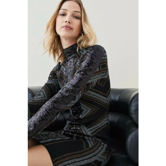 53% Responsibly sourced Viscose 29% Polyamide. 18% Metalised Fibre. Wash with similar colours. Model wears UK Size Small. Model height approx 5″9. Size Small centre back length approx 90cm.