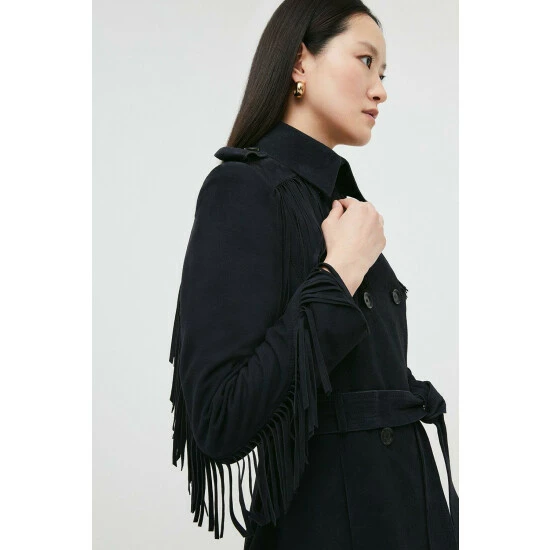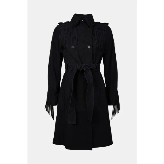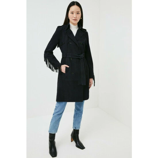 Main: 100% Goat Suede. Lining: 100% Viscose. Dry Clean Only. Model wears UK Size 8 US Size 4. Size 10 Centre back length: 95cm.