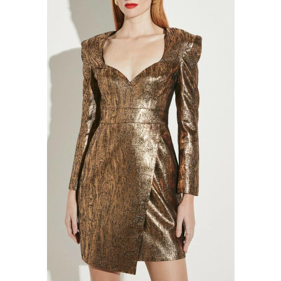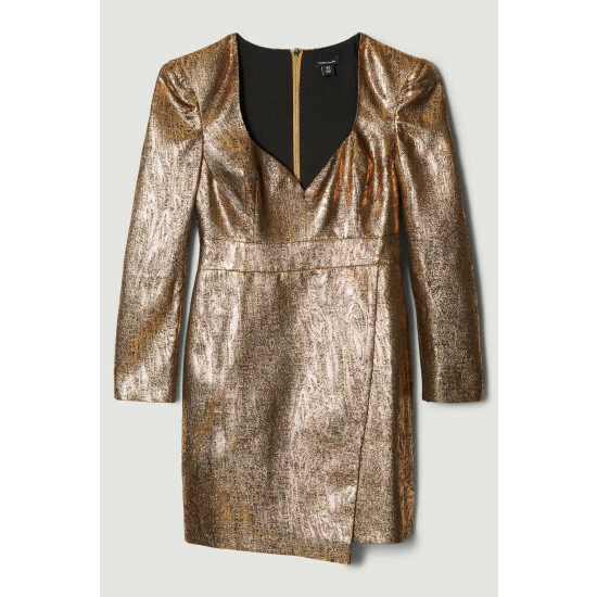Main: 51% Polyester, 32% Cotton, 1% Metallised fibre/Metallic fibre. Lining: 100% Polyester. Dry clean only. Model wears UK 8/US 4. Model height: 5″9. Length measurement: 84cm.