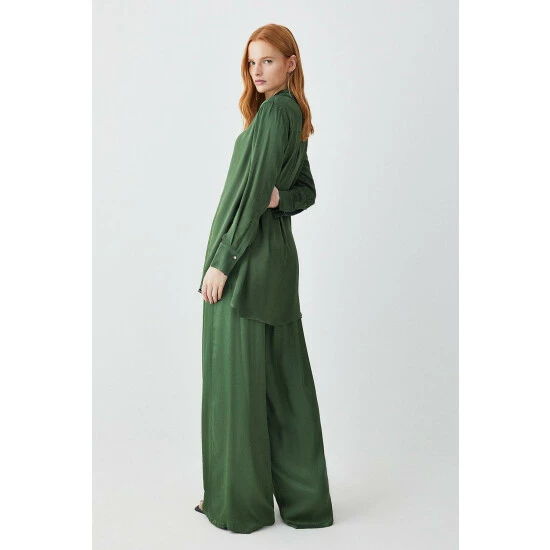 100% Viscose. Gentle machine wash at 30 with similar colours. Model wears a UK 8/US Size 6.