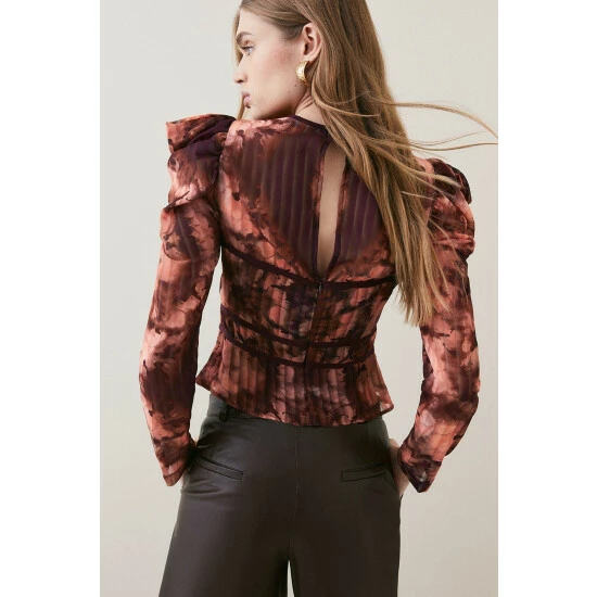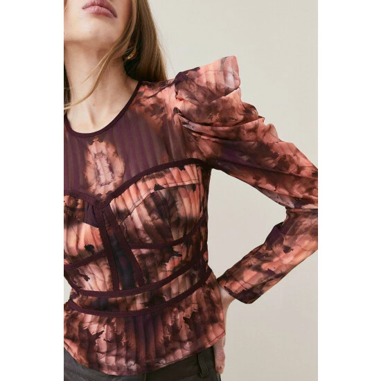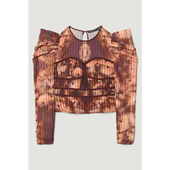 Outlet 🎁 KarenMillen Tie Dye Woven Tape Detail Top For Female ⌛