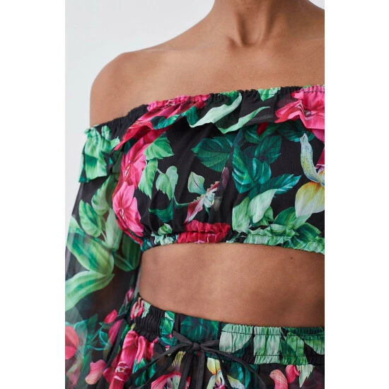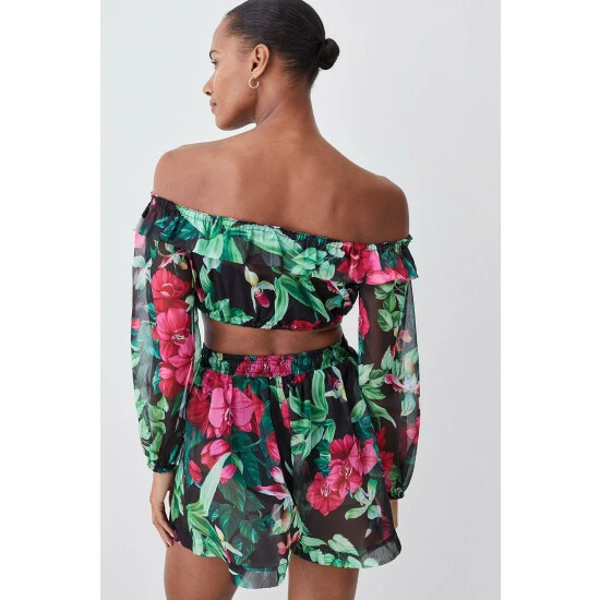 100% polyester. Gentle machine wash at 30 with similar colours. Model Height 5”10 – Model wears a UK 8/US Size 6.