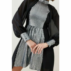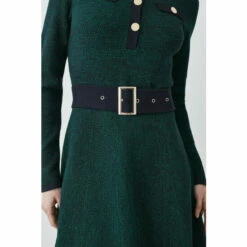 Wholesale ✨ KarenMillen Cut And Sew Tweed Panel Long Sleeve Skater Mini 👗 Dress For Female 😀