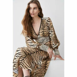 Wholesale ๐ฅฐ KarenMillen Animal Mixed Print Plunge Neck Woven Midi ๐ Dress For Female ๐งจ