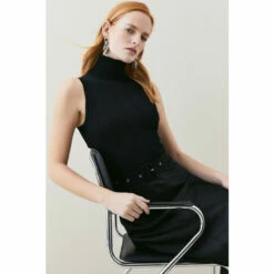 Wholesale ๐ KarenMillen Satin ๐ Skirt Sleeveless Rib Knit Mix Midi ๐ Dress For Female ๐