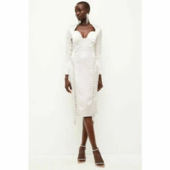 Wholesale ๐ KarenMillen Italian Structured Satin Corset Sleeved Midi ๐ Dress For Female ๐