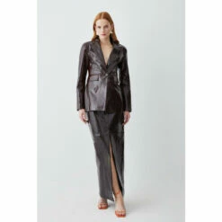 Best Sale โ KarenMillen Patent Leather Strong Shoulder Tailored Blazer For Female ๐