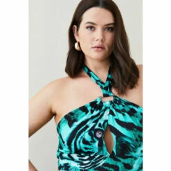 Best Sale 😍 KarenMillen Plus Size Mirrored Ombre Floral Pleat Drama Woven Mini 👗 Dress For Female 🛒