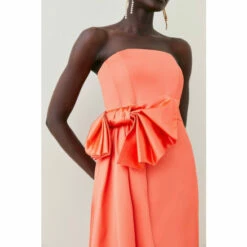 Best Sale 🥰 KarenMillen Italian Structured Satin Bandeau Bow Detail Pencil Midi 👗 Dress For Female 🛒