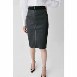 Brand new ⭐ KarenMillen High Waisted Zip Through Ponte And Pu Midi Pencil 👗 Skirt For Female 😀