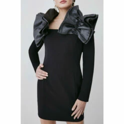 Brand new ✔️ KarenMillen Structured Crepe Jacquard Ruffle Shoulder Mini 👗 Dress For Female 💯