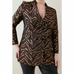 Budget 🎁 KarenMillen Plus Size Animal Jacquard Tailored Double Breasted Jacket For Female 🔥
