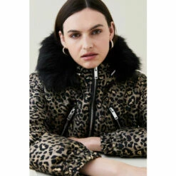 Budget ๐ KarenMillen Faux Fur Trim Animal Jacquard Puffer ๐งฅ Coat For Female โค๏ธ