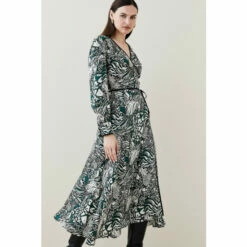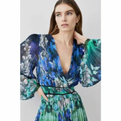 Budget ๐ KarenMillen Mirrored Ombre Floral Pleat Drama Woven Mini ๐ Dress For Female ๐ฅ