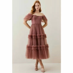Cheap โ๏ธ KarenMillen Lydia Millen Corset Detail Tulle Tiered Woven ๐ Dress For Female ๐