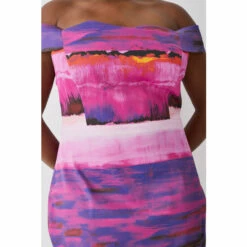 Cheap 🔥 KarenMillen Plus Size Italian Signature Stretch Painternly Bardot Midi 👗 Dress For Female ✨