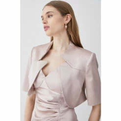 Cheap ๐ KarenMillen Italian Structured Satin Notch Neck Cover Up Jacket For Female ๐งจ