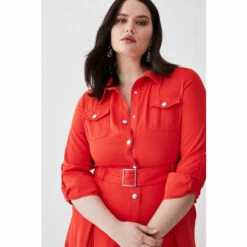 Coupon 🔥 KarenMillen Plus Size Soft Tailored Pleat Panel Sleeved Belted Midi 👗 Dress For Female 🔔