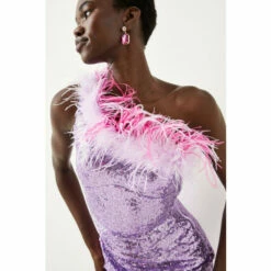 Coupon 🔥 KarenMillen Petite Metallic Guipure Lace Pleated 👗 Skirt Midi 👗 Dress For Female 🔔