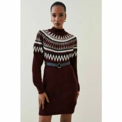 Hot Sale ๐ KarenMillen Lydia Millen Boucle Fairisle Belted Mini ๐ Dress For Female ๐