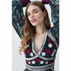 Hot Sale ๐ KarenMillen Floral Pleat Corset Detail Woven Strappy Midi ๐ Dress For Female โจ