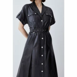 Hot Sale ๐ KarenMillen Leather Belted Button Detail ๐ Shirt Midi ๐ Dress For Female ๐