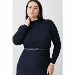 New ๐ KarenMillen Plus Size Slinky Jacquard Full Sleeve Knitted Maxi ๐ Dress For Female ๐