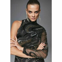 New ๐ฅ KarenMillen Petite Crystal Embellished Woven Mini ๐ Dress For Female โจ