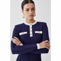 Promo 🔥 KarenMillen Plus Size Striped Knitted Long Sleeve Top For Female 👍