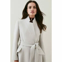 Promo 💯 KarenMillen Petite Italian Wool Investment Notch Neck Belted 🧥 Coat For Female 😉