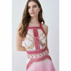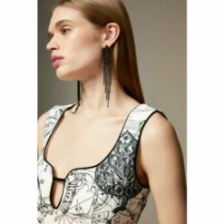 Top 10 ✔️ KarenMillen Tall British Museum Silk Cotton Star Mapped Woven Maxi 👗 Dress For Female ⭐
