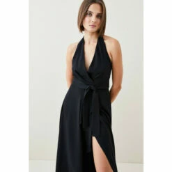 Best reviews of ๐ KarenMillen Soft Tailored Waterfall Halter Maxi ๐ Dress For Female ๐ฅฐ