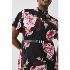 Best Pirce 🤩 KarenMillen Petite Mirrored Ombre Floral Pleat Drama Woven Mini 👗 Dress For Female 💯