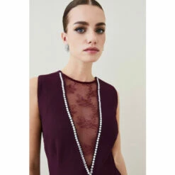 Best Pirce ✨ KarenMillen Petite Lace Front Diamante Jersey Midi 👗 Dress For Female 😀