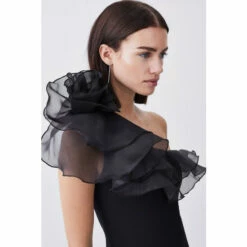 Best deal 🥰 KarenMillen Petite One Shoulder Organza Flower Detail Knit Midi 👗 Dress For Female ✔️