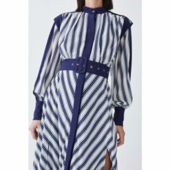Cheap ๐ KarenMillen Petite Soft Tailored Colour Block Tie Waist Midi ๐ Dress For Female ๐