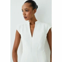 New ✨ KarenMillen Petite Soft Tailored Key Hole Cap Sleeve High Low 👗 Dress For Female ✔️