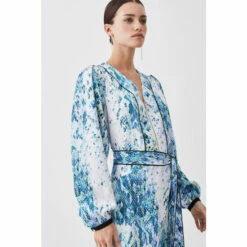 Outlet 🥰 KarenMillen Petite Soft Snake Print Satin Piped Zip Front Midi 👗 Dress For Female 🎉