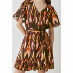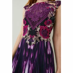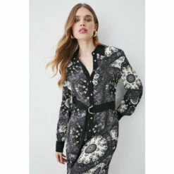 Best deal ⭐ KarenMillen Top Stitch Pleated Mixed Animal Detail Woven Midi 👗 Dress For Female 😍