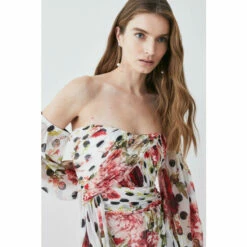 Best deal ๐ KarenMillen Spot Floral Chiffon Bardot Wide Leg Jumpsuit For Female ๐