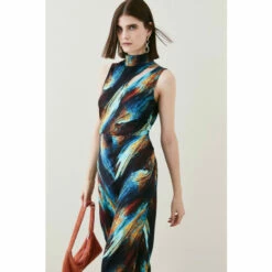 Coupon โญ KarenMillen Tall Marble Viscose Satin High Neck Jumpsuit For Female โค๏ธ