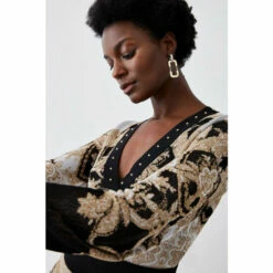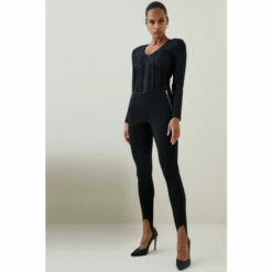 Discount โ๏ธ KarenMillen Long Sleeve Cut Out Detail Viscose Blend Jersey Top For Female ๐