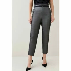 Brand new โ๏ธ KarenMillen Metallic Jacquard Waistband Detail Slim Leg Trouser For Female ๐ฅฐ